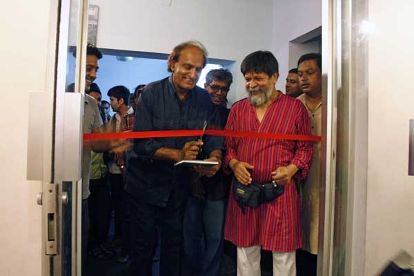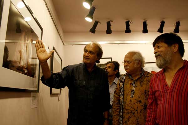 Indian Magnum photographer Raghu Rai inaugurates the exhibition “20 Years of Drik” at Drik Gallery. Also in picture. Dhali Al Mamoon (centre back), who gave the maiden Golam Kasem Daddy Lecture, and on right photographer Shahidul Alam, founder of Drik. 6th September 2009. ? Adnan/DrikNews