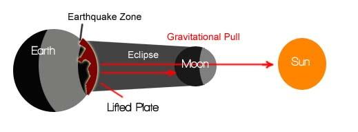 The eclipse quake theory is as follows, When the gravitational force of the sun and moon are both pulling on a plate that has not had series of recent earth quakes, the extra pull is all that is needed to “pop the seam” and cause a major quake.