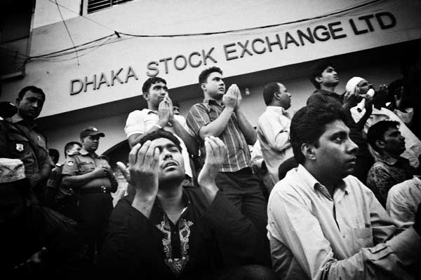 A special prayer and ?doa-e-yunus? is held in front the Dhaka Stock Exchange (DSE) at Motijheel seeking divine blessings for the stabilization of ongoing state of the stock market. The small investors prayed for their survival as they have lost most of their investment in continuous plunge of the share prices. Dhaka, Bangladesh