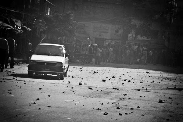 The Street in front of DSE during the investors? protest against the top bosses of the premier bourse and market regulators, and the central bank governor. The investors pelted law enforcers with brickbats, set fires and destroy cars and other vehicle they got near them in the street. Dhaka, Bangladesh.