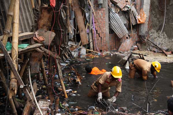 A five-storey building under going construction collapsed onto several tin-shed houses at around last night in Begunbari, Tejgaon, killing at least 14 people. Rescue operations by the army, firefighter and the Red Crescent are underway, although a lack of proper equipment may be hindering access to those who may be trapped deep under the rubble. Mohibul Haque, the deputy commissioner of Dhaka told The Daily Star at least 20 people remained missing, although the number is suspected to be higher as around 200 people lived in the tin-shed houses. Dhaka, Bangladesh. June 2, 2010. ??Mahbub Alam Khan/DrikNews Death toll has risen to 16 after a five-storey building under going construction collapsed onto several tin-shed houses at around last night in Begunbari, Tejgaon. Rescue operations by the army, firefighters and the Red Crescent are underway, although a lack of proper equipment may be hindering access to those who may be trapped deep under the rubble. Mohibul Haque, the deputy commissioner of Dhaka told The Daily Star at least 20 people remained missing, although the number is suspected to be higher as around 200 people lived in the tin-shed houses. Dhaka, Bangladesh. June 2, 2010. ??Amdadul Huq/DrikNews Death toll has risen to 16 after a five-storey building under going construction collapsed onto several tin-shed houses at around last night in Begunbari, Tejgaon. Rescue operations by the army, firefighters and the Red Crescent are underway, although a lack of proper equipment may be hindering access to those who may be trapped deep under the rubble. Mohibul Haque, the deputy commissioner of Dhaka told The Daily Star at least 20 people remained missing, although the number is suspected to be higher as around 200 people lived in the tin-shed houses. Dhaka, Bangladesh. June 2, 2010. ??Amdadul Huq/DrikNews Trying to recover bodies from the bog after the Begunbari collapse. Dhaka, Bangladesh. June 2, 2010. ??Amdadul Huq/DrikNews Mourners wail to express their grief. Begunbari collapse. Dhaka, Bangladesh. June 2, 2010. ??Amdadul Huq/DrikNews Others mourn in silence. Fighting to keep up hope. Begunbari collapse. Dhaka, Bangladesh. June 2, 2010. ??Amdadul Huq/DrikNews