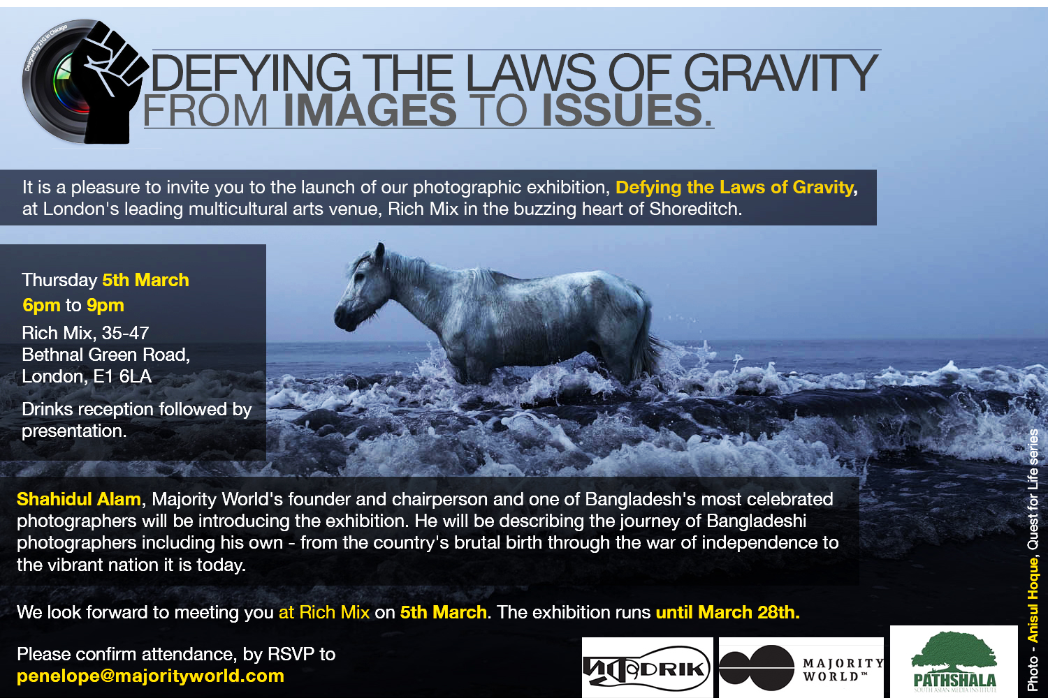 In fifteen years, and with the most rudimentary of equipment, they have taken a hundred square metres of Dhaka as their own and created a vortex of creativity that has shaken the world of photography. The whirlwind around that vortex, fueled by a revolution against injustice, has not only taken on a tired education system steeped in bureaucracy, but also a global and seemingly impenetrable photographic industry hijacked by wealthier nations. They are photo-militants who have learnt to defy the rules of gravity.