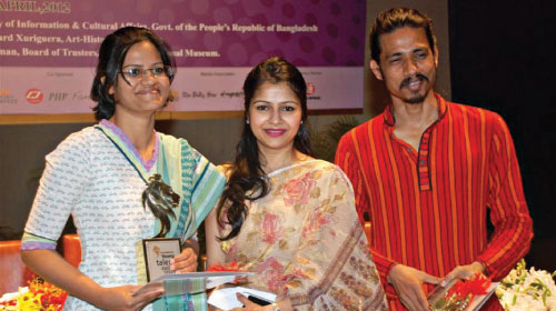 From left: Musrat Reazi, Nadia Samdani and Khaled Hasan at the prize giving ceremony of Dhaka Art Summit