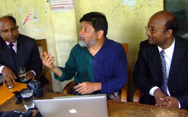 shahidul-at-bar-association-after-bail-shwopon-kurigram-bangladesh-17-june-2009Shahidul Alam ?at Bar Association after being released on bail. Left, Advocate Siddiqur Rahman who filed bail petition ?On right Advocate S S M Yunus Chowdhury Pakhi of BLAST, the organisation which formally supported the defence. Kurigram. June 17th. 2009.???Swopon/DrikNews/Majority World
