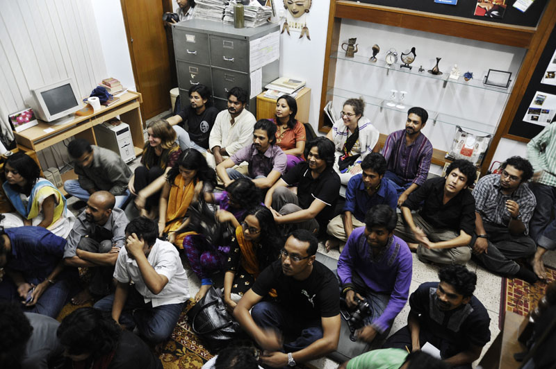 Photographers at Drik Studio at Philip Blenkinsop's presentation. Photo Wahid Adnan/DrikNews/Majority World Philip Blenkinsop at this presentation at Drik Studio. Photo: Wahid Adnan/DrikNews/Majority World