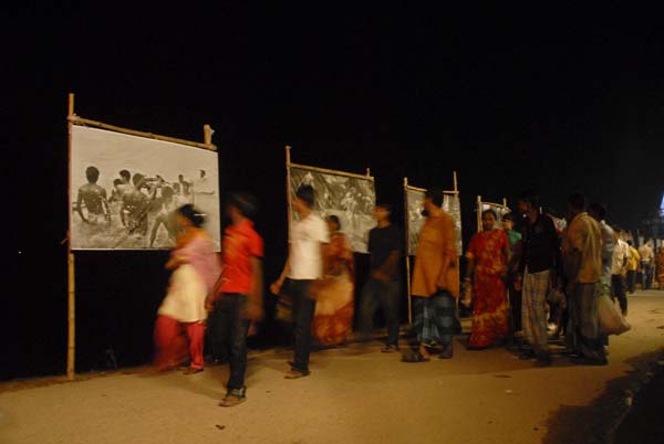 Sharadiyo Durga Puja festival in Shakhari Bazaar, Dhaka, Bangladesh, 2010 The last day of Puja called Doshomi where they drown their Goddess in the river. It?s called the ?Durga Bisharjon?. A man was dancing with the bowl of Dhuup while they were drowning the statue of their deity God Durga. Photo: Nafeesa Binte Aziz The final round on the river Turag in Ashulia before immersing the goddess into the water. Ashulia, Dhaka, October 2010. Photo: Saadul Islam Oh dear holy mother please take away my pains as the candle light washes away the shadows. Shakhari Bazaar, Dhaka, October 2010. Photo: R S Rahman