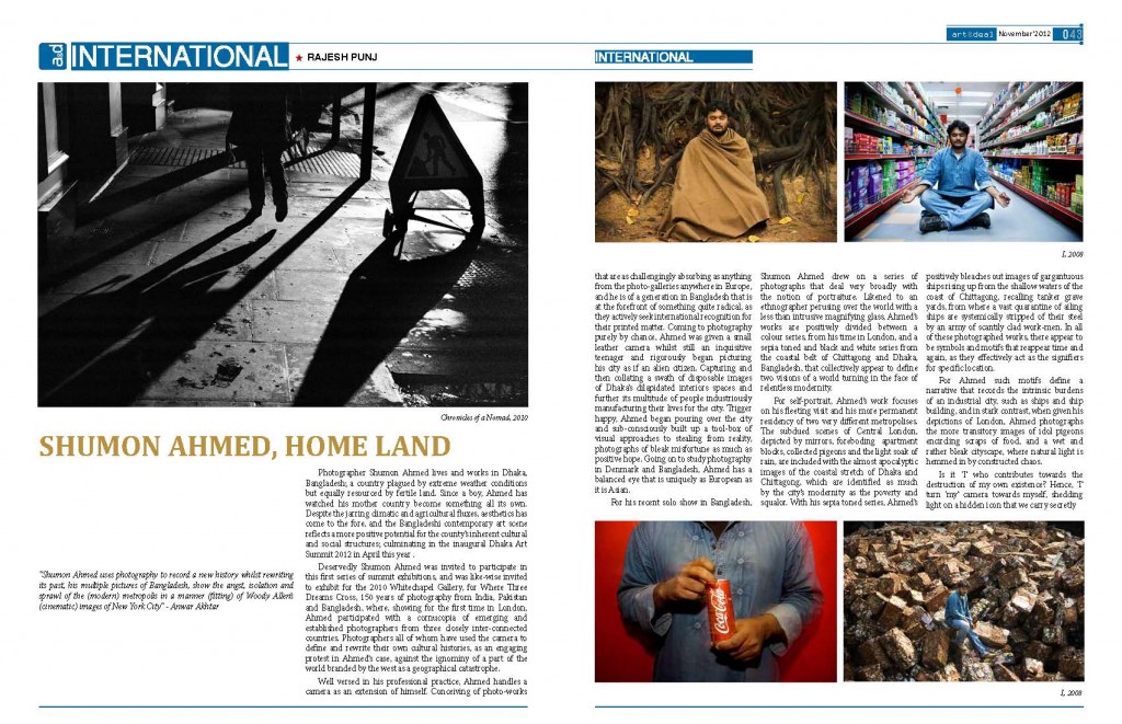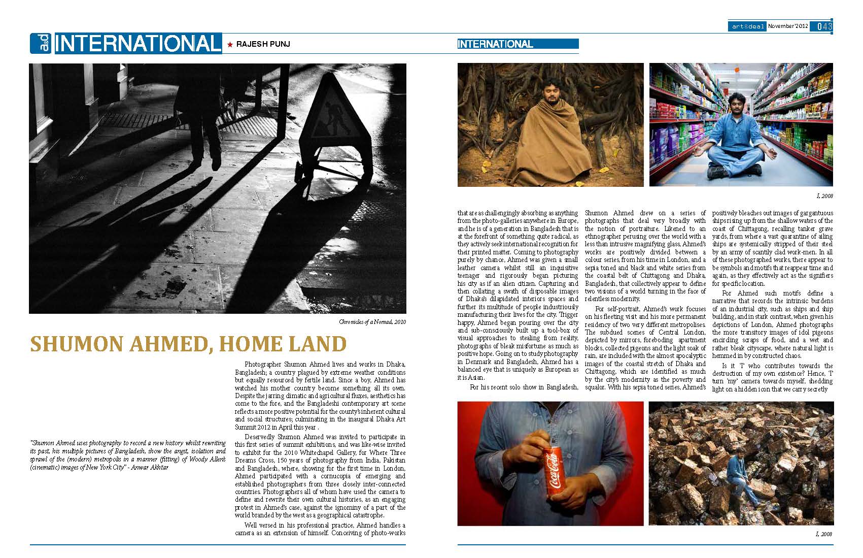 Deservedly Shumon Ahmed was invited to participate in this first series of summit exhibitions, and was like-wise invited to exhibit for the 2010 Whitechapel Gallery, for Where Three Dreams Cross, 150 years of photography from India, Pakistan and Bangladesh, where, showing for the first time in London, Ahmed participated with a cornucopia of emerging and established photographers from three closely inter-connected countries. Photographers all of whom have used the camera to define and rewrite their own cultural histories, as an engaging protest in Ahmed?s case, against the ignominy of a part of the world branded by the west as a geographical catastrophe.